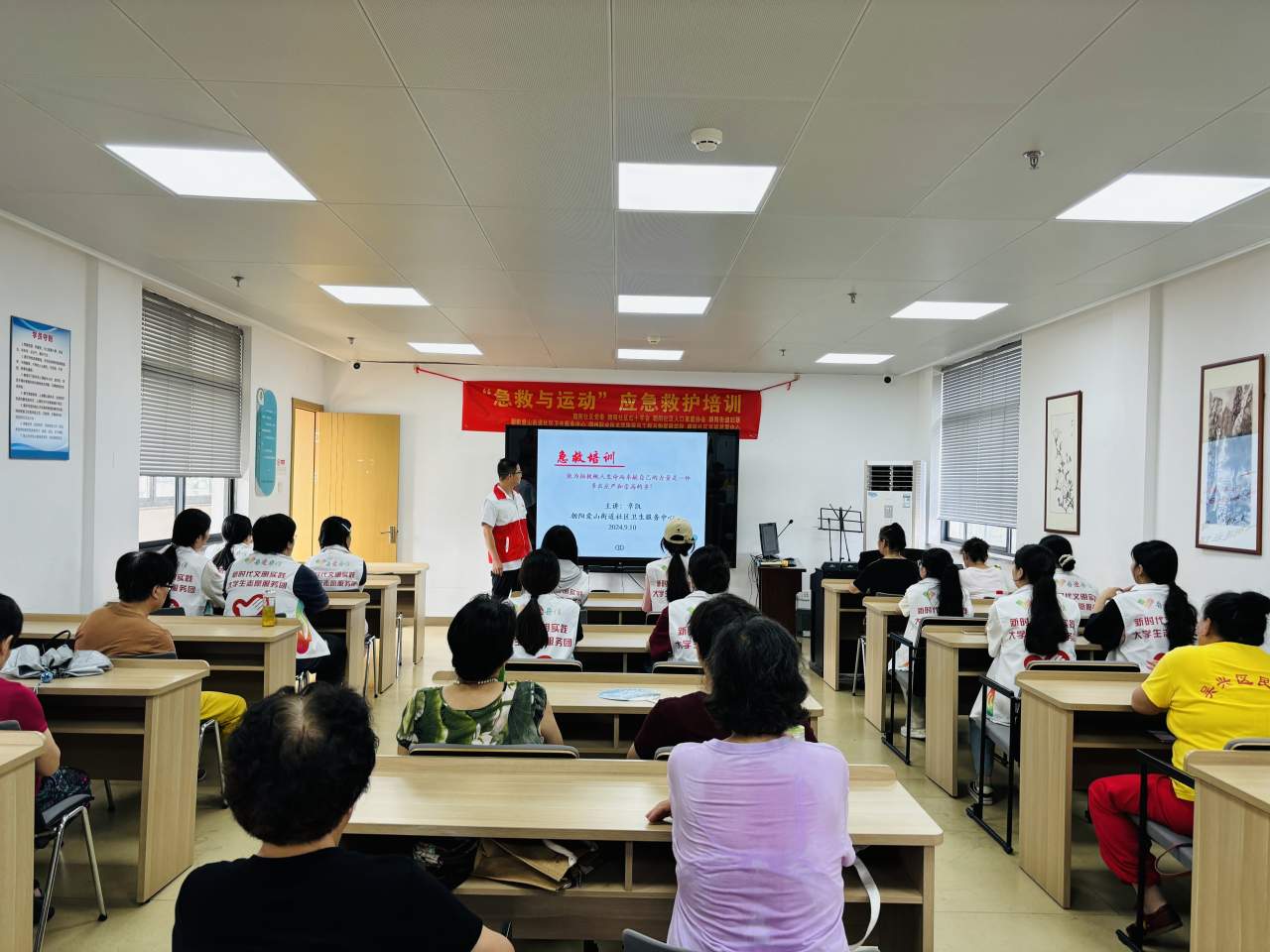 今年9月14日是第25个“世界急救日”。为传播应急救护知识,提高居民应对突发事件及意外伤害的自救互救能力,9月10日,朝阳社区党委联合朝阳社区红十字会、朝阳爱山街道社区卫生服务中心、社区幸福邻里中心以及湖州职业技术学院信息工程与物联网学院开展2024年“急救与运动”主题宣传活动,此次活动共邀请40人居民参加。